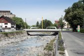 The SĂ€ger Bridge crosses the Dornbirner Ache, making it one of Dornbirn's most important transport links. The bridge is regarded as a gateway to the city centre and is highly frequented by local public transport, cyclists, and pedestrians. The bridge borders directly on the campus of the University of Applied Sciences in the northeast and on the hospital in the southwest.