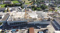 Mittlerweile sind die letzten 28 m langen Dachbinder montiert und die Parkdeckdecke ist schon fast geschlossen. Die Wände und Decken der Lüftungszentrale und der Technikräume neben dem Parkdeck sind bereits in Arbeit, Die vorgegebenen Termine können bestens eingehalten werden.