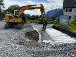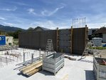 Bereits im April wurde mit den Erdarbeiten gestartet, wobei diese neben den Vorarbeiten fĂŒr die Pilotierung auch die Errichtung einer neuen 100m langen ErschlieĂungsstraĂe der Gemeinde sowie der vollstĂ€ndigen dazugehörenden Infrastruktur beinhalteten. Im Anschluss wurde mit den Arbeiten fĂŒr die Fundierung, die Grundleitungen sowie der Bodenplatte gestartet. Zwischenzeitlich stehen schon die ersten ErdgeschoĂwĂ€nde.
